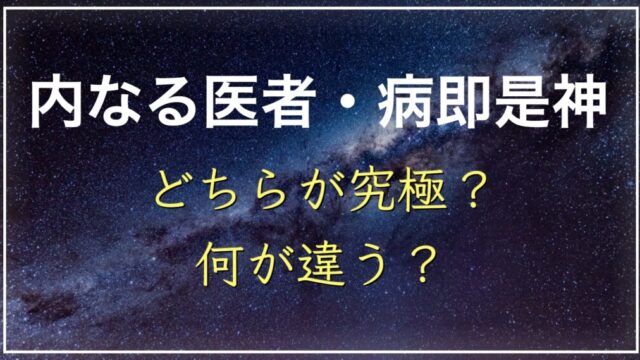 内なる医者 内なる医者と病即是神ワーク4—真の最高峰はどちら?宇宙原理そのものをより表すのは?ワンネス体感ワークとの違いは 2025年12月14日 OKei (本稿を動画を見たい方はこちらへ) https://youtu.be/aUiohnPzTIU はじめに 「内なる医者」と「病即是神 …