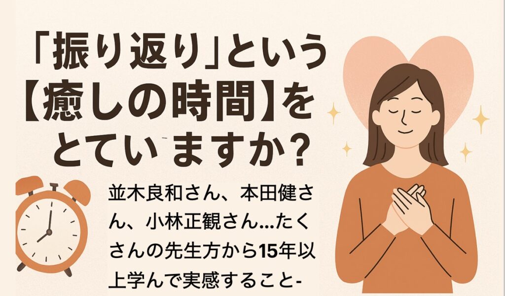今回は「振り返り」という【癒しの時間】をとっていますか?-並木良和さん、本田健さん、小林正観さん…たくさんの先生方から15年以上学んで実感すること-という話題です。